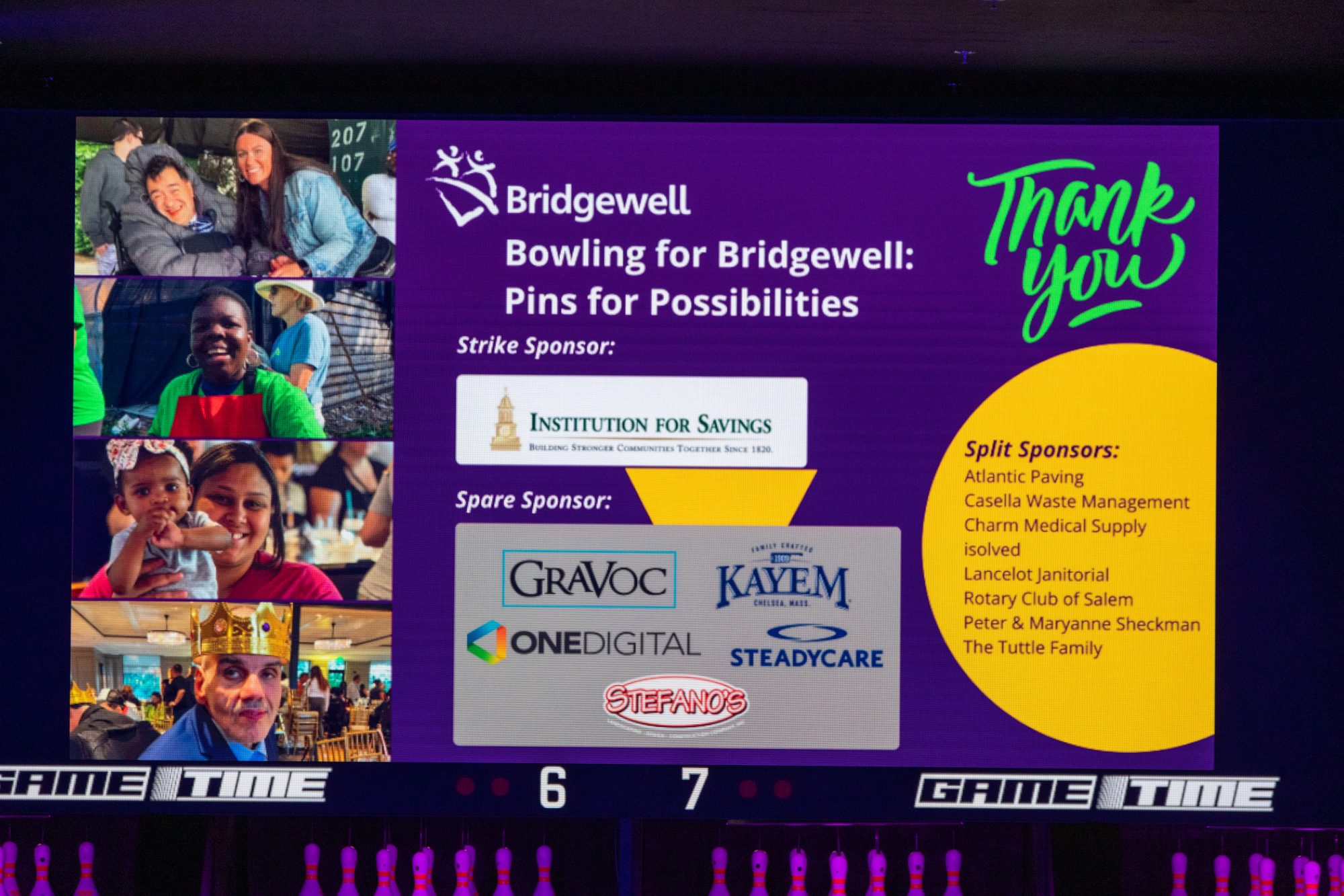 Through sponsorship, event tickets and raffle donations, Bowling for Bridgewell: Pins for Possibilities raised more than $18,000 in support of Bridgewell’s programs and services. Amy Sutton took home the Highest Score trophy, and Lynn Lewis won New England Patriots tickets through the Gameday or Payday Raffle. The prize was generously donated by Lancelot Janitorial.