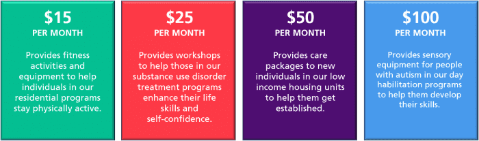 Become a Bridgewell Empower Member today and your monthly gifts will help us deliver support through community housing, day programs, outpatient treatment, recovery services, education and employment training. It’s an easy way to give regularly and feel great about the real, positive impact you are making on those we serve.