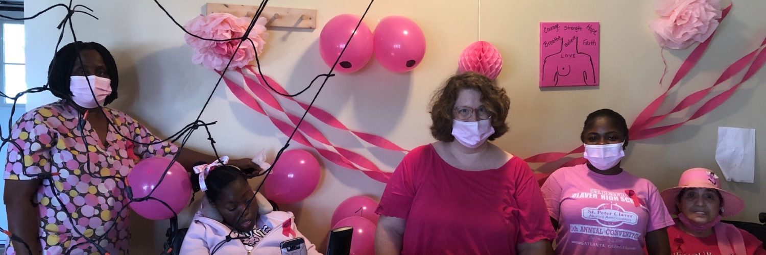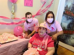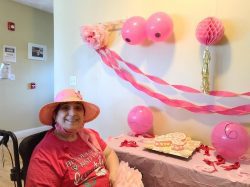 October is Breast Cancer Awareness Month! Residents and staff in Dracut commemorated the occasion with a pink ribbon cake and by wearing pink and decorating the home with pink balloons and streamers.