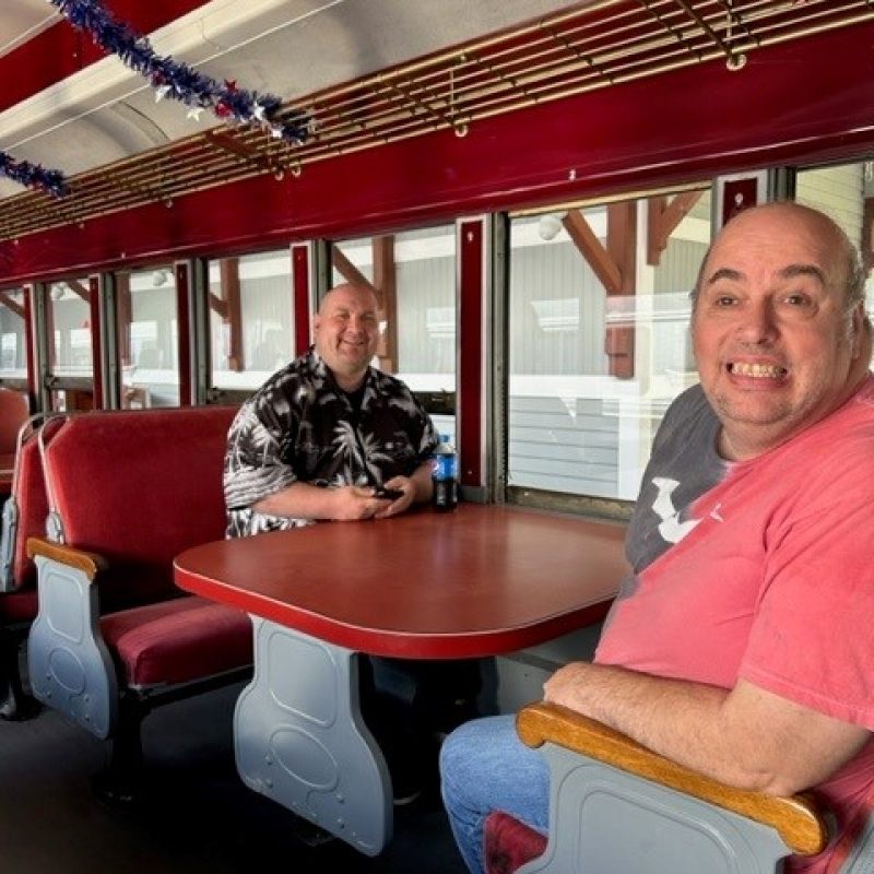 Later in the month, a second group of residents boarded the Hobo Railroad. Arianna, Lisa, Robbie, Chad and Bill (again!) enjoyed the scenic view and enjoyed delicious burgers and shopping on the way home. Robbie is a train enthusiast and enjoys taking and posting train videos on YouTube.
