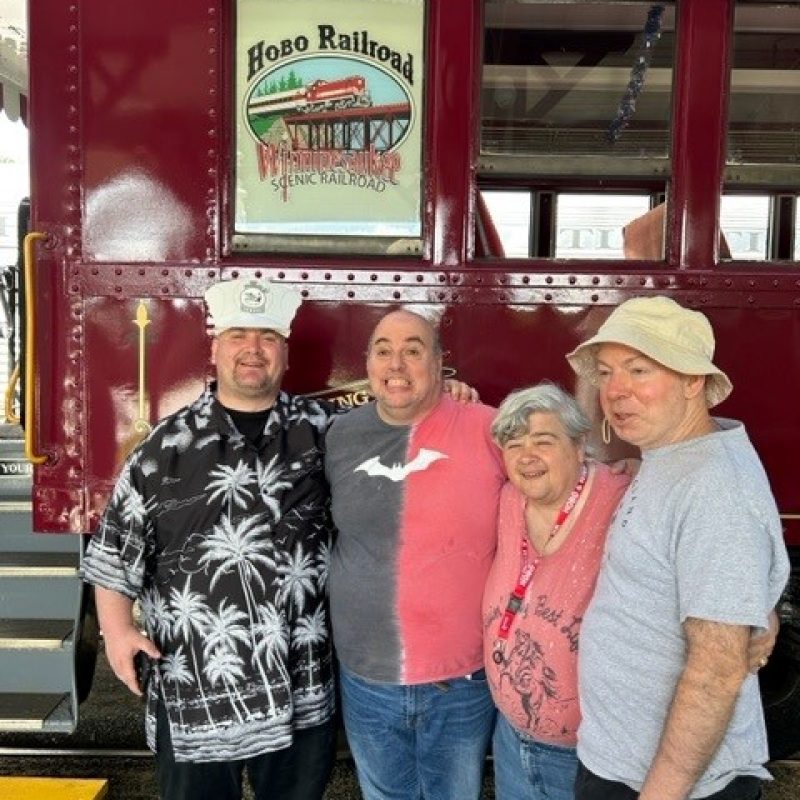 Bridgewell residents Bill, Lynne, Eric and Rob enjoyed a 1.5 hour trip on the scenic Hobo Railroad earlier this month, departing from the Lincoln NH Depot. Conductor Mike was very welcoming and made the ride enjoyable for all onboard.