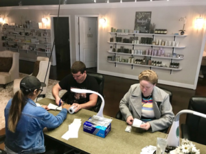 Annie and Zach, who attend Bridgewell’s Rosewood II Day Program, have worked at Spalenza since September. Responsibilities range from refilling massage creams, watering plants, restocking the water and coffee station, sweeping floors, dusting shelves, cleaning mirrors and windows, polishing leather seats, organizing supplies and folding laundry.
