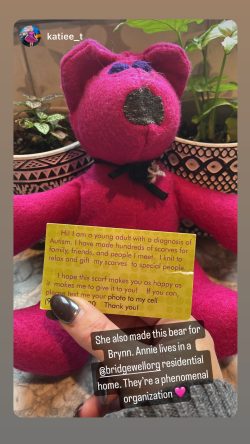 At Bridgewell’s Imagine the Possibilities Gala in 2022, keynote speaker Maureen O’Connell mentioned how her daughter Annie, who benefits from multiple Bridgewell services, is an avid knitter.