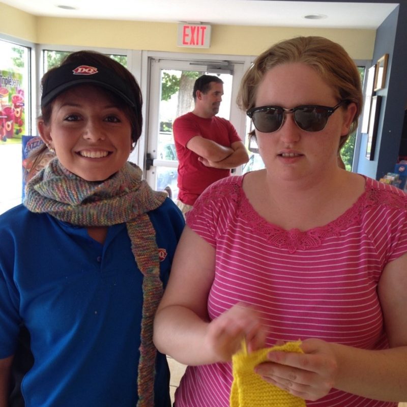Annie learned to knit when she was 12 years old, in sixth grade – it kept her busy and relaxed, and she still very much enjoys it today. In fact, since learning the craft, Annie has made hundreds of scarves for relatives, friends, and even new acquaintances she meets out and about in the community. She also makes knit stuffed animals for babies.